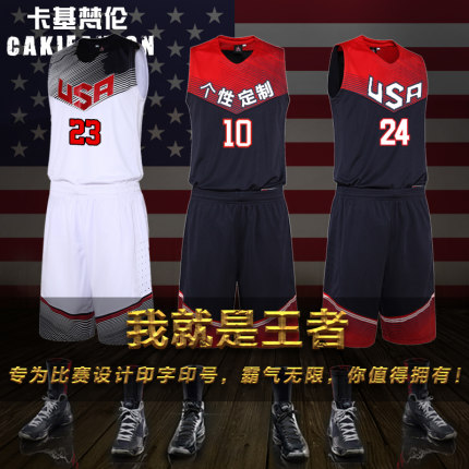 CAKIFANLON 卡基梵伦 美国队篮球服套装,专业运动面料, 轻薄透气,速干亲肤。天猫有商家报价48元,拍下再使用30元券,实付9.9元包邮,月销量428件。