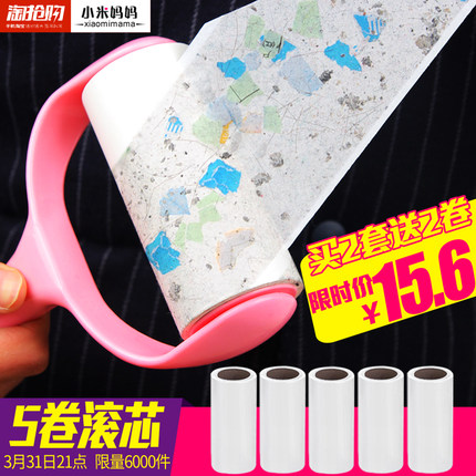 小米妈妈粘毛滚筒刷,套装包含滚筒刷+5筒纸卷,共300撕;粘性强,使用方便,清洁床单,沙发,衣物和汽车坐垫上的毛发和颗粒状垃圾的好帮手;天猫旗舰店现特价15.6元,价格不错,还可买2送2,大家不妨备一些;