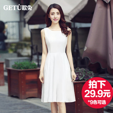 歌兔 女士 纯色雪纺连衣裙,采用进口珍珠雪纺面料制作,质地轻薄透明,外观清淡雅洁,具有良好的透气性和悬垂性,穿着飘逸舒适,独特的多层不规则荷叶边设计,工艺独具匠心,腰部松紧设计,整齐的褶皱凸显身体曲线,提升女性魅力。