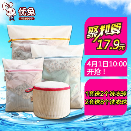 优兔高品质洗衣袋四件套,精选优质布料,无异味,沥水性佳;自动锁定拉链,机洗不会甩开,有效保护衣物,可反复使用。柔韧细化适合毛衣、内衣等脆弱衣物,加厚粗网适合普通或比较脏的衣物。聚划算现价17.9元包邮,多种四件套组合可选。