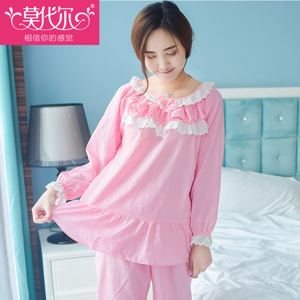 韩版粉系春秋季长袖薄款睡衣,健康细腻,圆领设计,柔软细腻而不乏型格时尚,立体剪裁的工艺,穿着合身舒适,健康低碳,让衣服不失单调,下摆和袖口针距均匀,做工精致,耐穿耐洗。