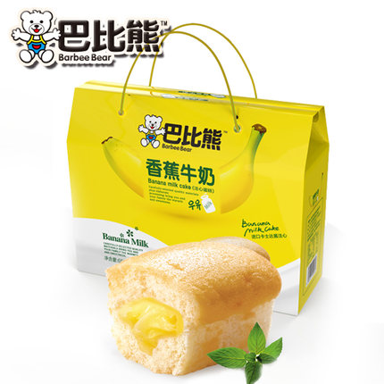 【巴比熊香蕉牛奶注心蛋糕早餐面包糕点心650g礼盒劵后19.9元包邮】