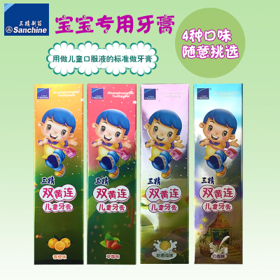 四种水果味,宝宝任意选,给宝宝爱上刷牙的秘密,哈药出品,用做儿童口服液的标准做牙膏,品质您放心 ,“双黄连”配方,五效合一更护齿